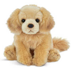 This stuffed golden retriever toy has a soft golden coat and generous feathering, just like a real golden retriever dog. Ideal for snuggling and carrying, this soft plush toy has a durable fill that can withstand hours of playing and tossing around.