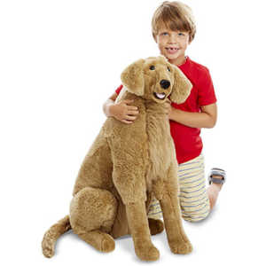 If you are looking for a lifelike golden retriever plush toy, check out the Melissa & Doug Giant Golden Retriever. Handcrafted with care and great attention to detail, this massive 2’ tall golden retriever can be a great gift for golden retriever lovers.
